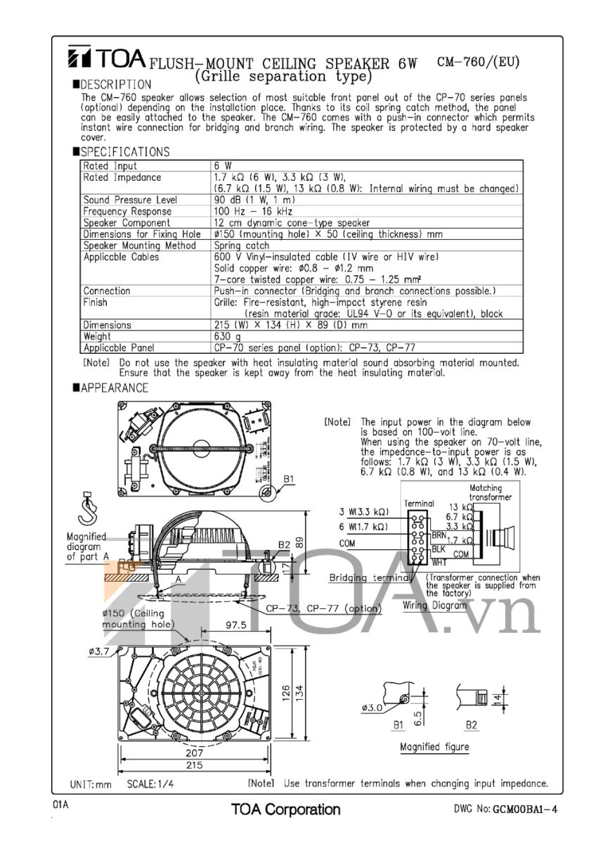 | Thông số kỹ thuật | TOA CM-760 |